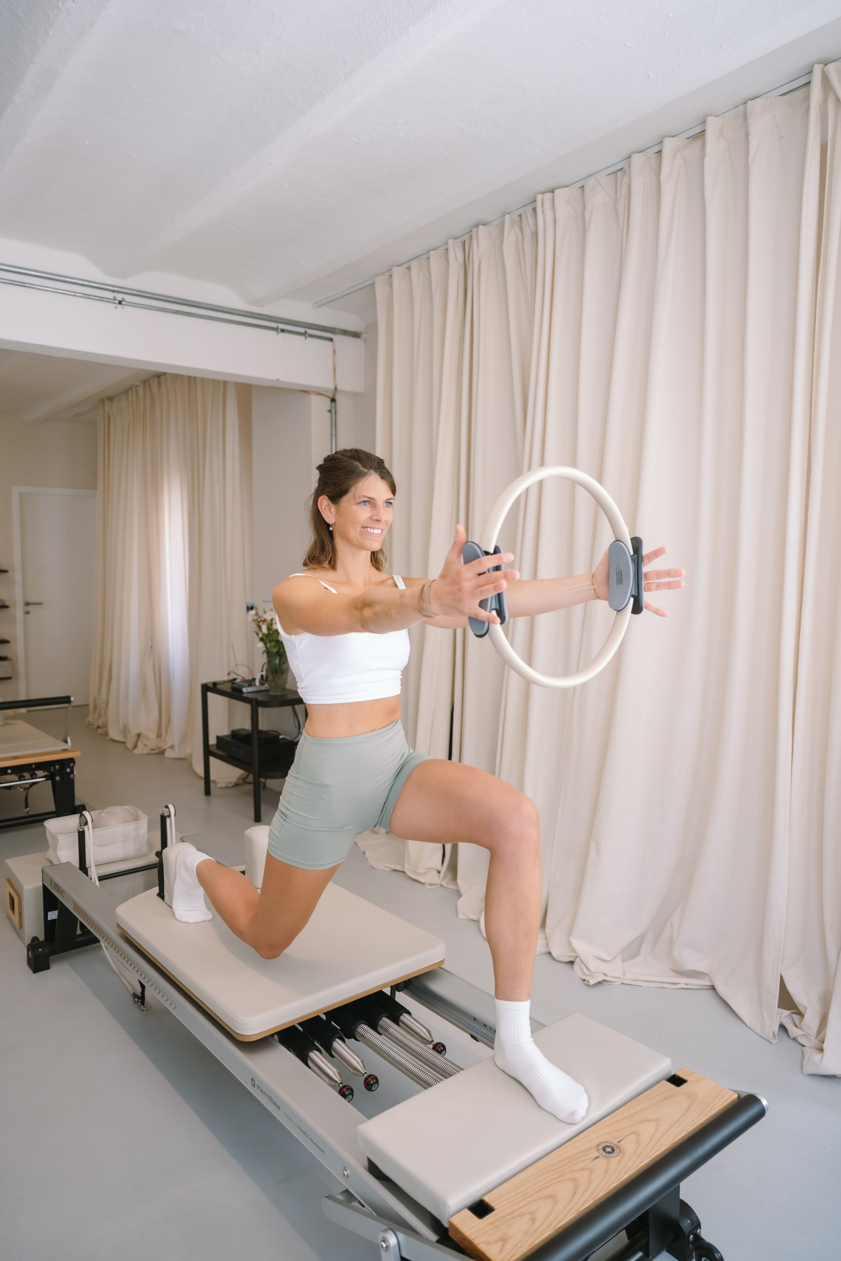 Das lichtdurchflutete Studio, die liebevollen Details und die klare, moderne Gestaltung machen diesen Ort zu etwas ganz Besonderem. Ein Raum, der inspiriert, der Kraft gibt und der Lust macht, direkt auf den Reformer zu steigen.